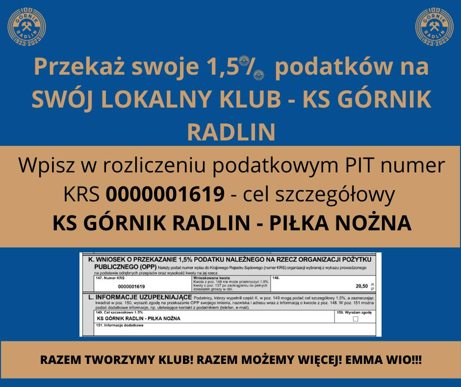 Zachęcamy do przekazania naszemu Klubowi 1,5% z podatku. Nic Was to nie kosztuje a nam pozwoli na organizacje kolejnych wydarzeń w naszym Klubie