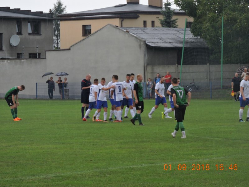 70 minuta - to co stało się pod polem karnym Jedności nie powinno mieć miejsca w piłce nożnej. Sędzia dyktuje rzut z autu, obrońca Jedności ustawia sobie piłkę do rzutu wolnego, Kuba Lubszczyk chce prawidłowo ustawić gościom piłkę i zostaje uderzony w twarz, po chwili leży również Jejkowic, który również został uderzony w twarz, zamieszanie, przepychanki, ostre wymiany zdań a sędzia nie raczy nawet pokazać kartki dla żadnego z zawodników. Ten błąd sędziego powoduje że mecz się zaostrzył. pokazały się głupie faule i zagrania