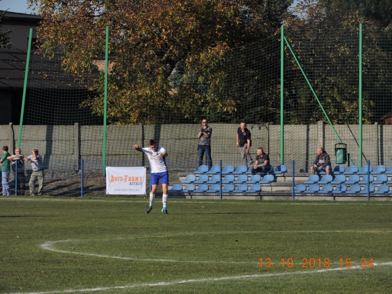 Mecz rozpoczął się z goła inaczej niż ten sprzed tygodnia w Dębieńsku. I jedni i druzy chcieli szybko zdobyć gola. I nie musieliśmy na niego zbyt długo czekać. Rzut wolny z okolic 20 metra. Piłkę ustawił Daniel Chyczewski. Uderzył, piłka odbiła się od poprzeczki i wpadła w okienko bramki. Po dwóch minutach powinno być już dwa a nawet trzy do zera, najpierw Marcin Gniadek trafił z bliska w bramkarza, a chwilę później ten sam zawodnik w akcji 2 na 1 oddał strzał, który wybronił bramkarz gości. Co nie udało się nam udało się przeciwnikowi. Zbyt dużo miejsca pozostawiliśmy pomocnikowi Gotartowic, Łukasz Cipcer spokojnie przyjął piłkę obrócił się z nią i fenomenalnym strzałem lewą nogą zdjął pajęczynę z okienka radlińskiej bramki. Chwilę później znów mieliśmy okazję na wyjście na prowadzenie. W 37 minucie kapitalny strzał Daniela Chyczewskiego na rzut rożny wybija bramkarz, a chwilę później z rzutu rożnego Kacper Kąkol minimalnie niecelnie. Tak więc pierwsza połowa pod hasłem jak strzelać to tylko bramki stadiony świata zakończona wynikiem 1:1.