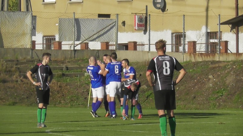 W końcu nadeszło upragnione wyjazdowe zwycięstwo naszych zawodników. Nadeszło w najbardziej odpowiednim czasie bo w meczu z rywalem zza miedzy Polonią Niewiadom. Mecz od początku zapowiadał się na twardą walkę o każdą piłkę. W pierwszej połowie dogodne okazje do zdobycia bramki miał Daniel Chyczewski ale kilkukrotnie lepszy był bramkarz lub piłka minimalnie mijała słupki bramki Polonii. Z drugiej strony również dużo pracy miał nasz bramkarz, aż do 39 minuty kiedy to po rzucie rożnym i serii błędów na naszej obronie Gospodarze wychodzą na prowadzenie i nie oddają go do końca pierwszej połowy. W szatni gorąco, dużo rozmów. Po burzliwiej przerwie po głośnym EMA WIO wychodzimy z szatni na drugą połowę, którą zaczynamy w fenomenalnym stylu gdyż między 50 a 62 minutą zdobywamy trzy bramki, których autorem był Tomasz Kunatowski. Pierwsza po zespołowej akcji i dośrodkowaniu Wojtka Frycza zdobyta strzałem głową, druga bramka to z kolei asysta Arka Jordana, który przebił się przez obrońców oddał strzał i do pustaka trafił już Kuna. Trzecia bramka to zasługa naszego prawego obrońcy - Jarka Ostrzołka, który przebojem wszedł w pole karne i jego dośrodkowanie po wybloku trafia w poprzeczkę, do piłki dopada Tomek Kunatowski i strzela obok bezradnego bramkarza Polonii. My dalej tworzyliśmy akcje, chcieliśmy kolejnych bramek, ale tym razem Patrykowi Kraszczyńskiemu, Michałowi Jaskólskiemu czy też Gracjanowi Papokowi brakło nieco szczęścia. W końcówce popełniamy drugi katastrofalny błąd na linii bramkarz obrona i piłka trafia do naszej siatki. Wynik końcowy 2:3 dla Radlina. Powoli pniemy się w górę tabeli. Poniżej skrót ze spotkania: