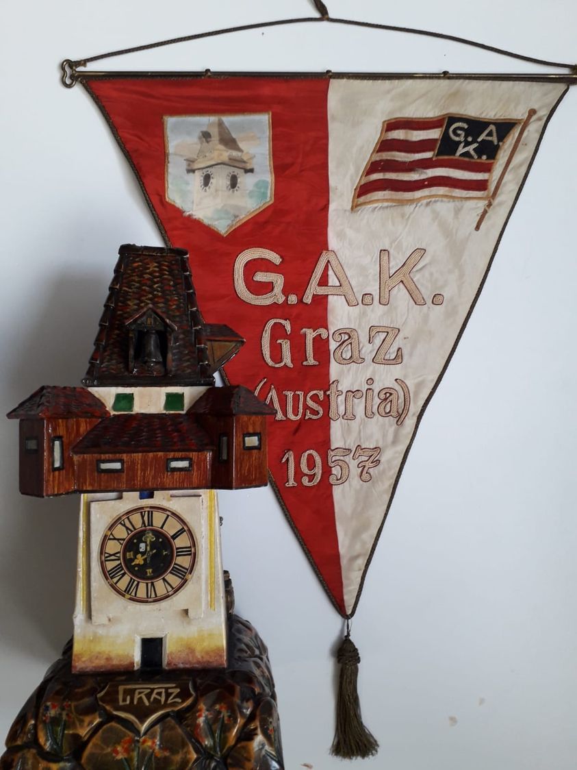 Przepiękną pamiątką po tym spotkaniu, jest ogromny proporzec z czerwono-białej satyny z wyszytą nazwą klubu, herbem oraz symbolem Grazu - wieżą zegarową Schlossberg. Która to została uratowana po atakach wojsk Napoleona na miasto.