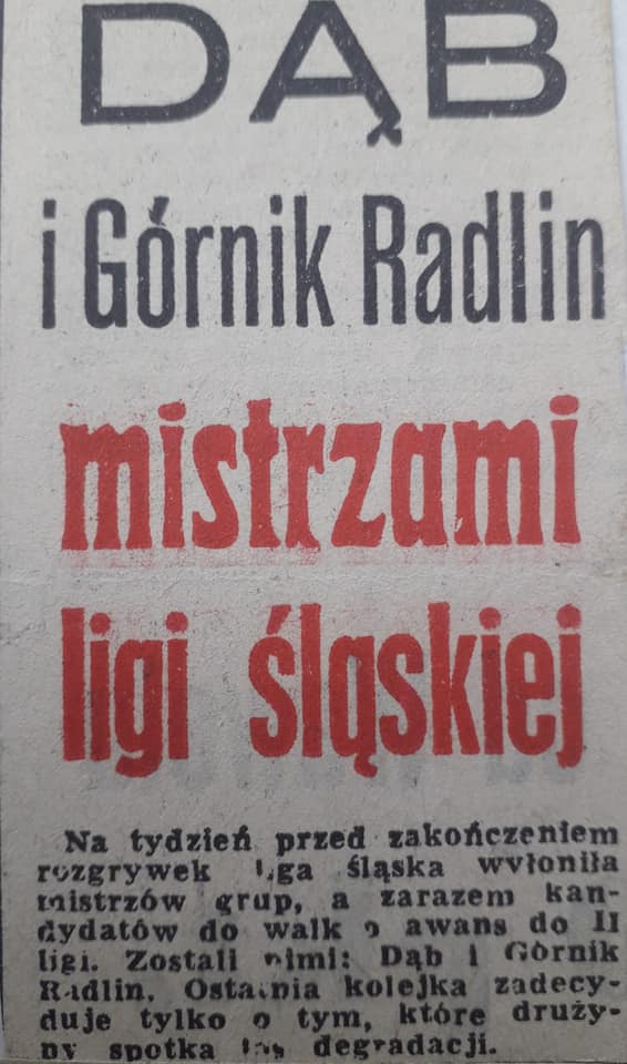 W pierwszym pełnym sezonie nowego systemu rozgrywek 1961/62, Górnik Radlin znów dał o sobie przypomnieć kibicom na Górnym Śląsku. Po 22 spotkaniach III Ligi (nazywaną Ligą Okręgową grupy II) nasz klub uplasował się na 1 miejscu z sumą zdobytych 33 pkt. (2 pkt. za mecz wygrany) notując 15 zwycięstw, 3 remisy i 4 porażki. By tym samym móc zmierzyć się z pierwszym zespołem grupy I - Dębem Katowice o tytuł moralnego Mistrza Śląska i walkę o awans do II Ligi.