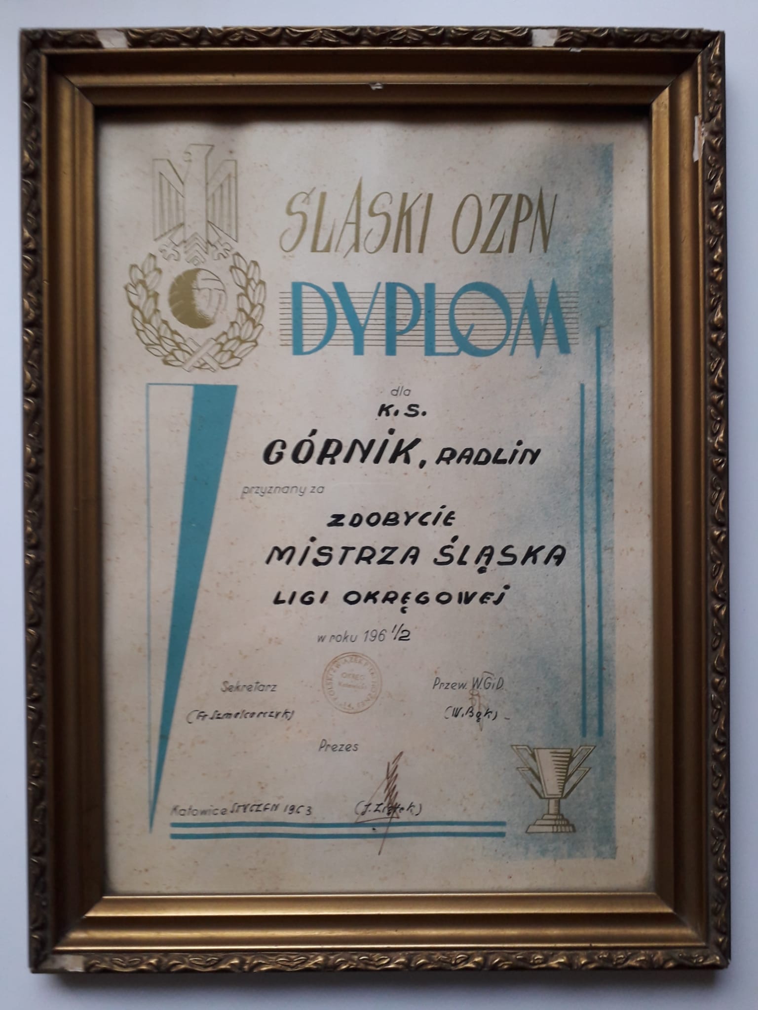 Po tym pełnym dramaturgii meczu pozostał drugi bliźniaczy dyplom, o tej samej szacie graficznej i podpisem m.in Jerzego Ziętka. Lecz już z innym wpisem ,,Za zdobycie Mistrza Śląska..."!