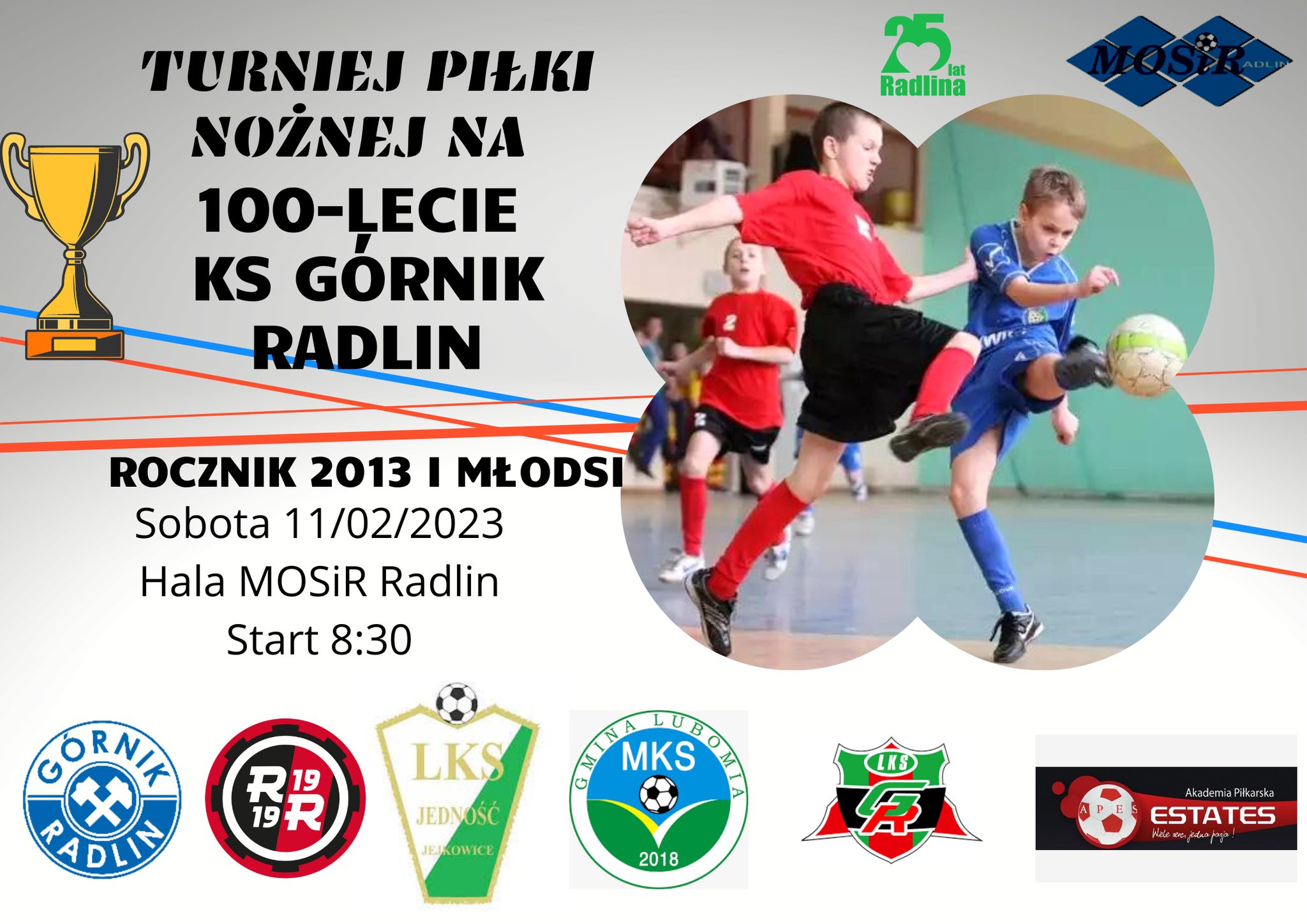 Pierwsza część obchodów to halowy turniej piłkarski zawodników urodzonych w roczniku 2013 i młodsi. Dużo emocji, piękne bramki, interwencje bramkarzy. Radość za patrzenia młodych adeptów piłki nożnej