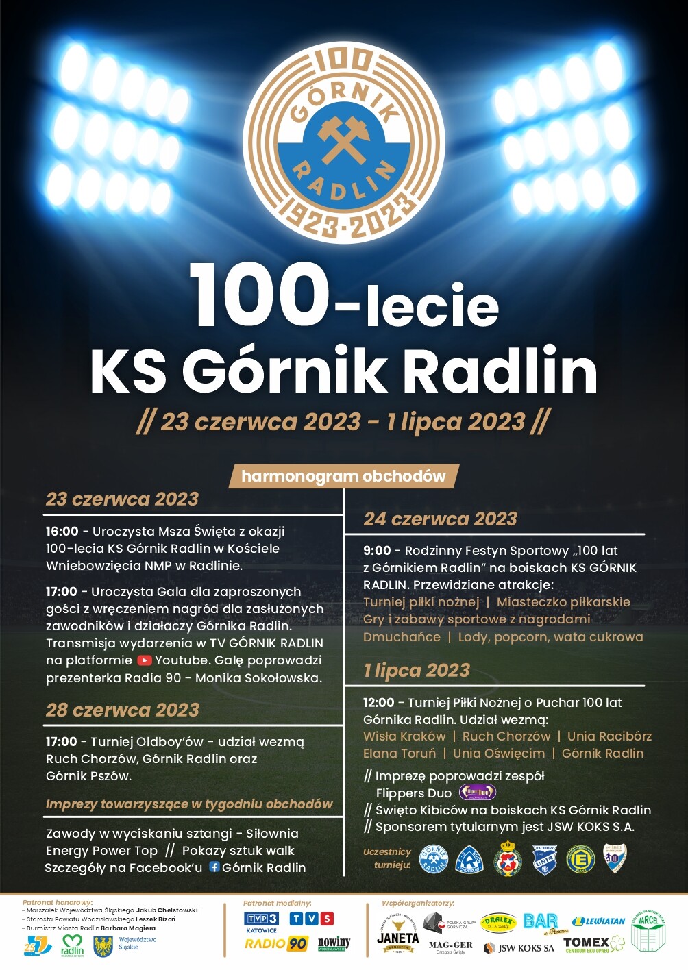 Już 1 Lipca Wielki Turniej z okazji 100lecia Górnika Radlin. Na naszym boisku zobaczymy 6 drużyn: