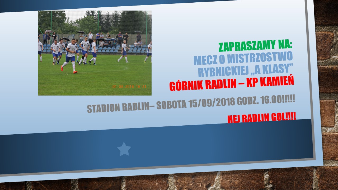 ZAPRASZAMY NA MECZE DRUŻYN GÓRNIKA RADLIN W NADCHODZĄCY WEEKEND.