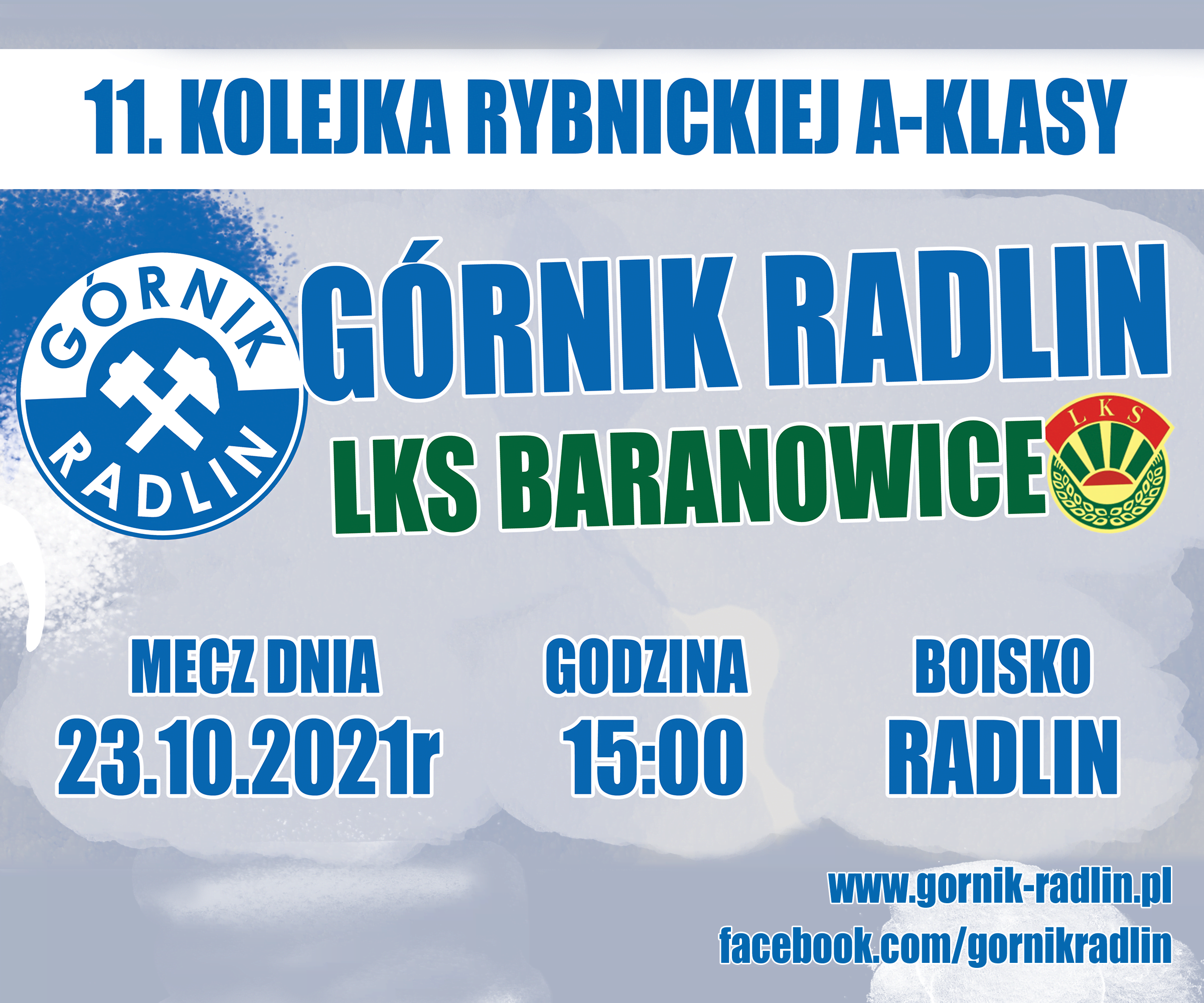 W jedenastej kolejce Rybnickiej A-klasy rywalem Górnika Radlin będzie zespół LKSu z Baranowic.
